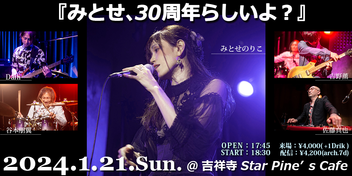 :みとせのりこ(vo)・Dani(b)・佐藤真也(keys)・吉野薫(g)・谷本朋翼(d)